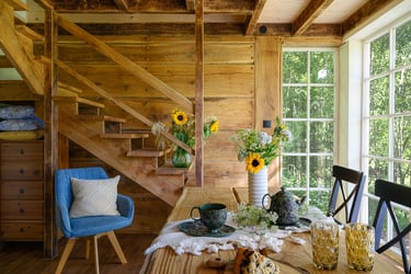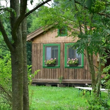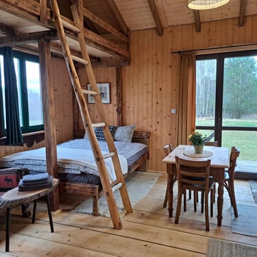 Przytulna, mała drewniana chatka wiejska dla 4 osób.