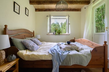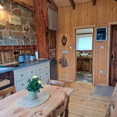 Wygodna, drewniana chatka wiejska dla 6 osób.